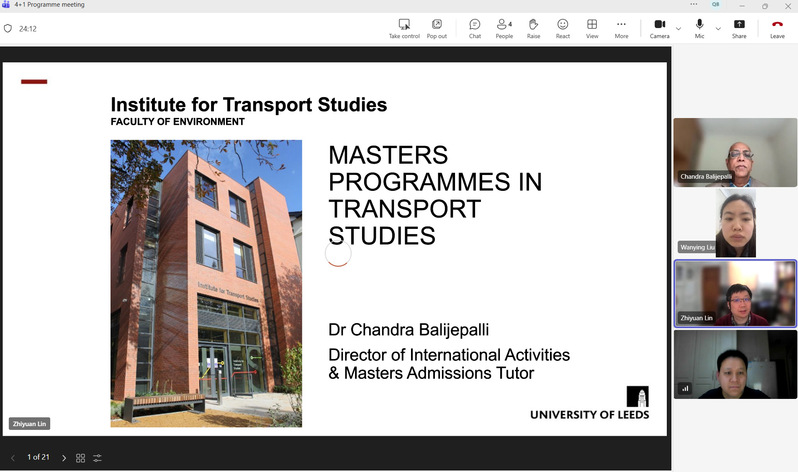 会议最后,双方就后续工作安排达成一致,利兹大学交通运输研究所每年将为博彩门户网站 学生提供10个减免20%学费的名额,用以支持长安大学博彩门户网站 学生赴利兹大学交通运输研究所攻读硕士学位。双方将进一步加强沟通协作,完善项目实施细节,推动合作项目顺利落地实施。此次线上会议的召开,标志着长安大学博彩门户网站 与利兹大学交通研究学院在人才培养合作方面迈出坚实一步,对于提升学院国际化办学水平、培养具有全球视野的高层次交通运输人才具有重要意义。
